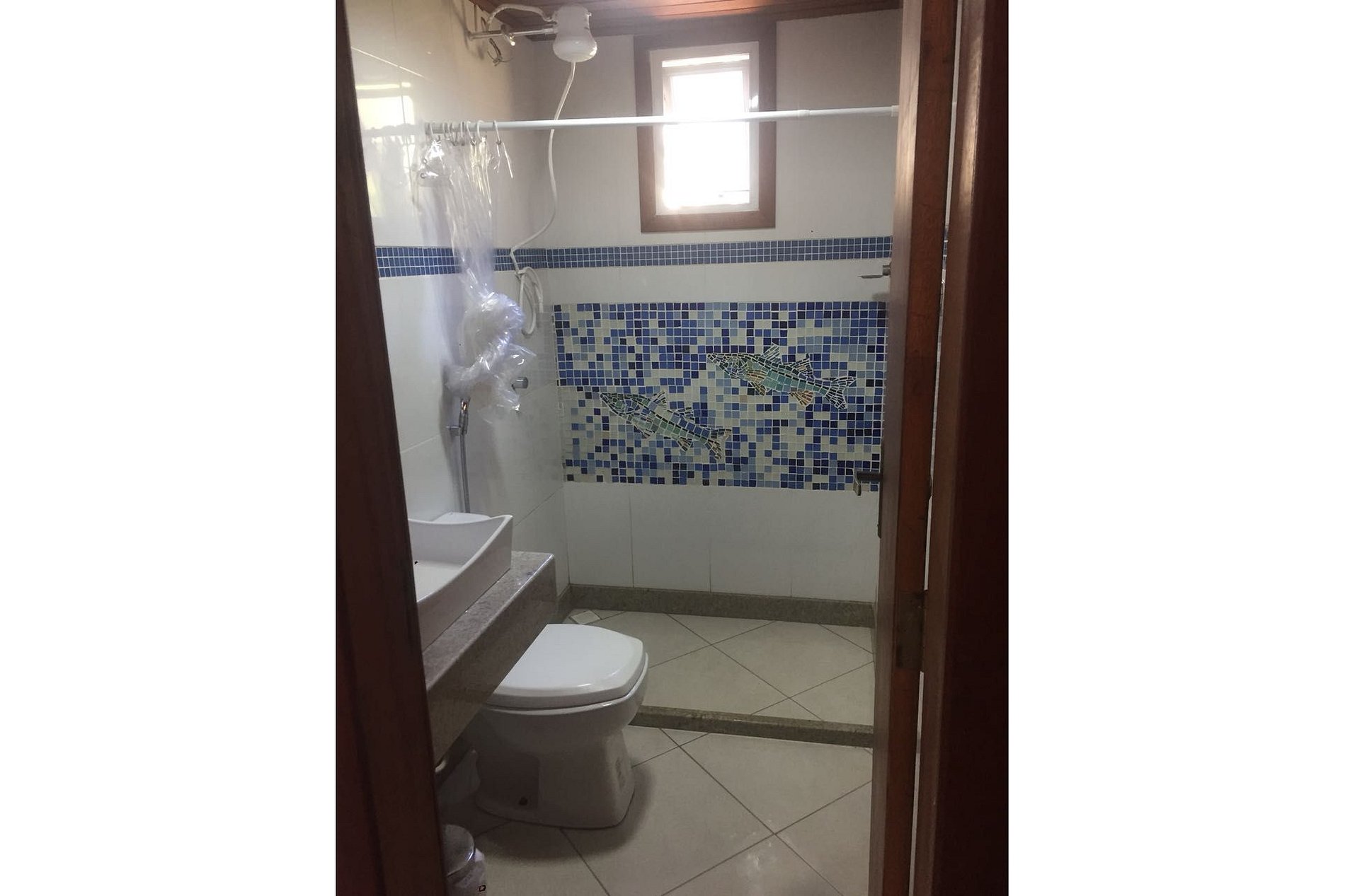 Para a sua estada em Regência, você contará com o acesso a uma casa de 50m² com: 1 cama de casal e 1 cama de solteiro; 1 cama queen, cozinha com geladeira e fogão sem utensílios e três banheiros sem roupas de cama e sem toalhas.