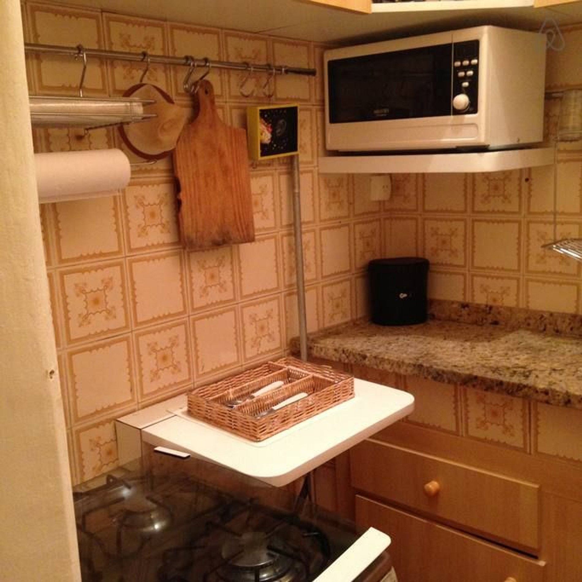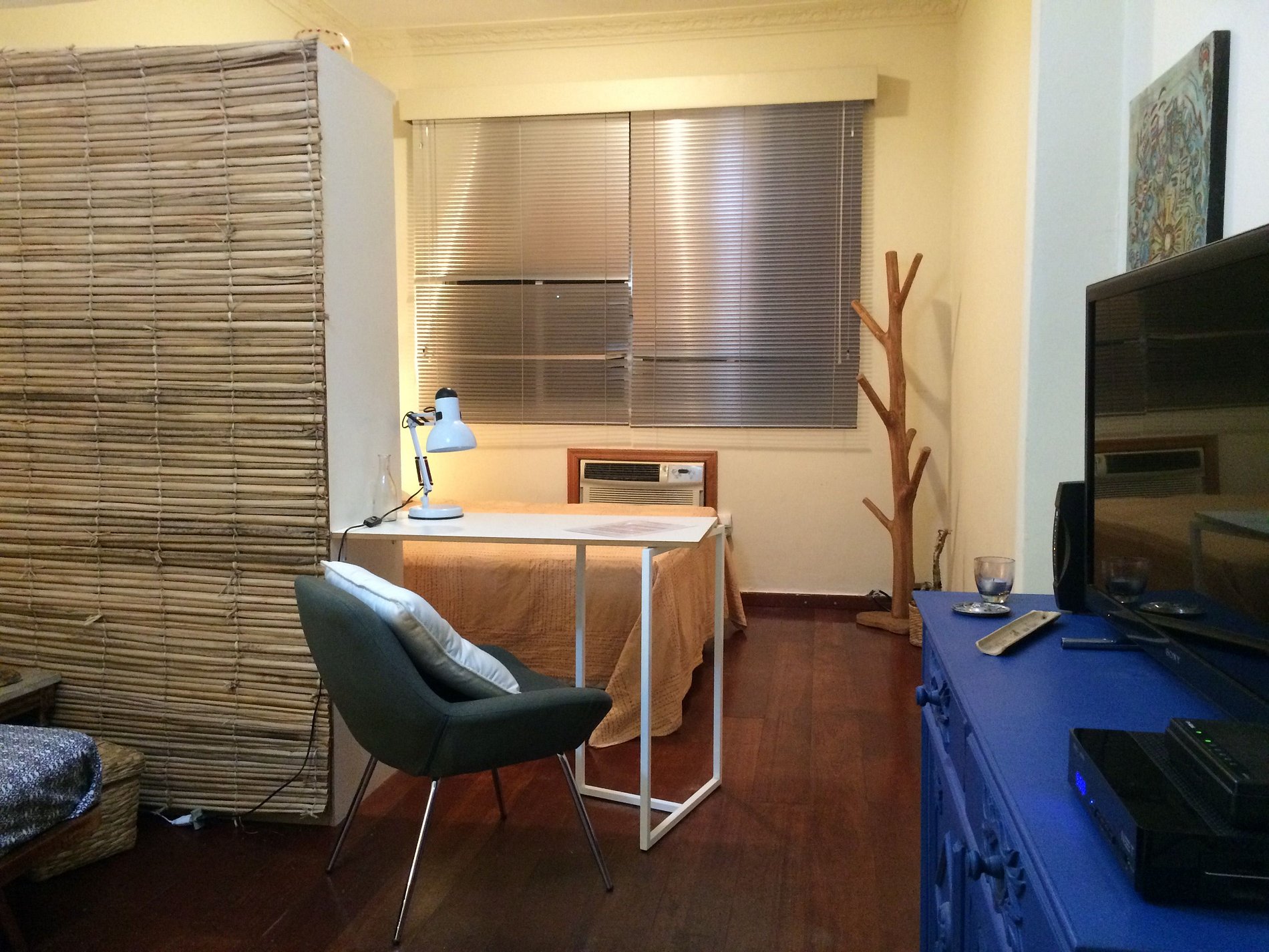 Para a sua estada no Rio, você contará com um apartamento de 25m² com: 1 cama de casal e 1 cama de solteiro; cozinha e banheiro completos; Wi-Fi; TV a Cabo; ar condicionado; roupas de cama e toalhas. As peças de roupa de cama não são de primeira classe, porém sempre lavadas e periodicamente tratadas. O prédio possui elevador.
