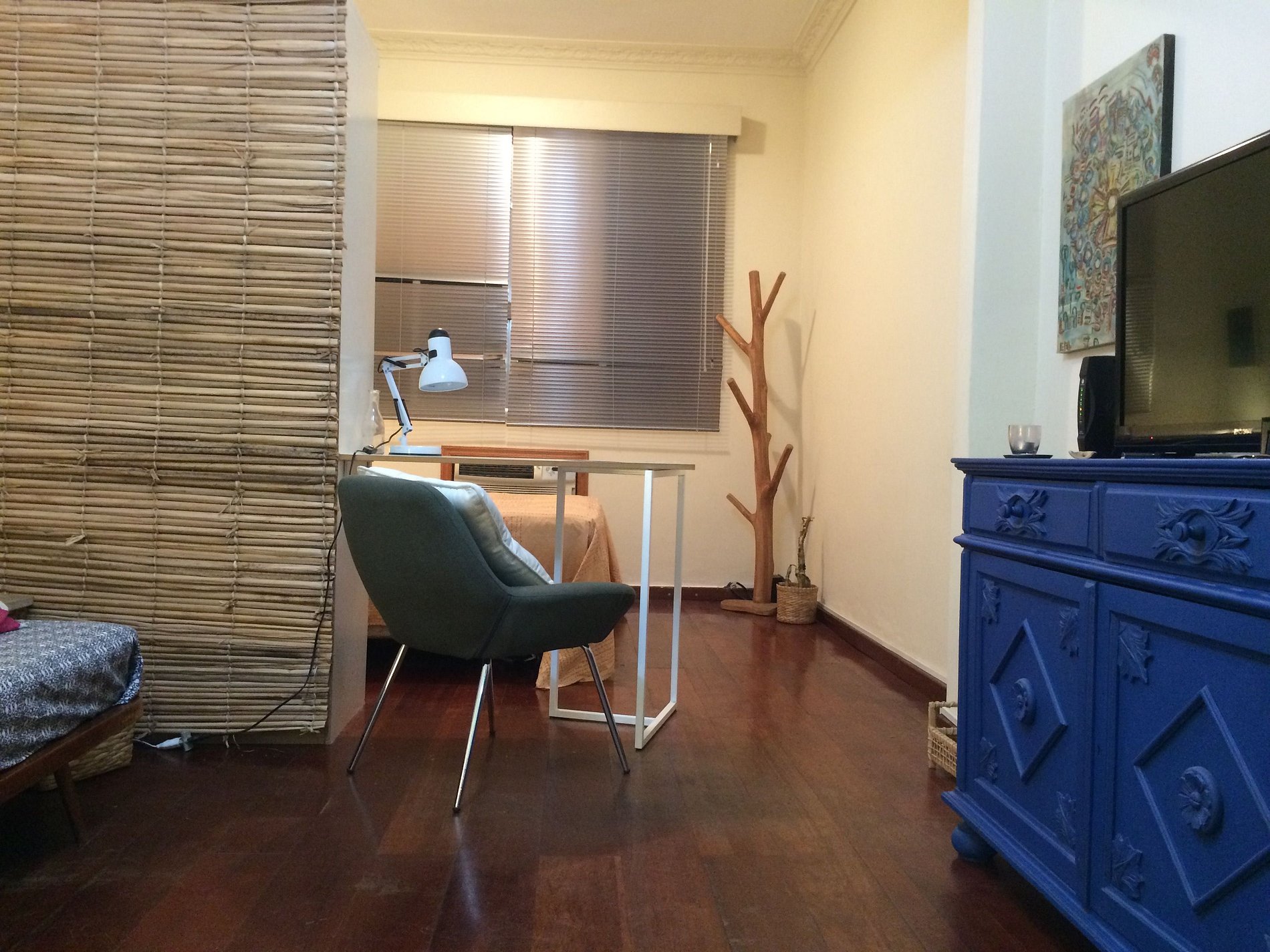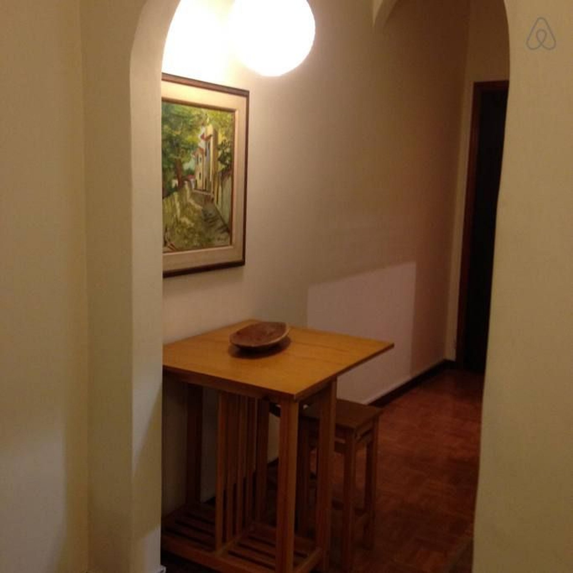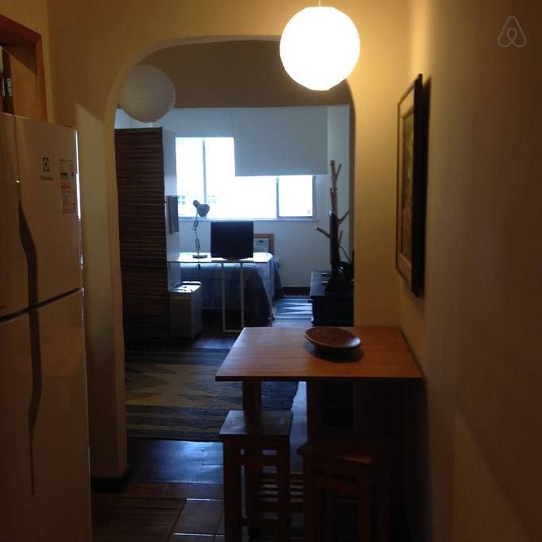 Este é uma apartamento de um cômodo localizado em Botafogo, bairro uma estação de metrô até a famosa praia de Copacabana. Perto da praia! O apartamento pode hospedar um pequeno grupo de até 3 pessoas.